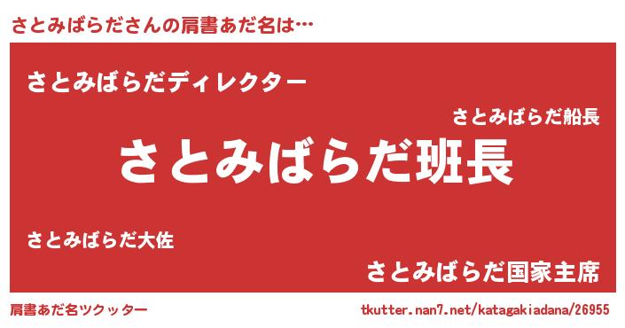 | 意味不明あだ名 | 『とにかく怪しいさとみばらだ』 |