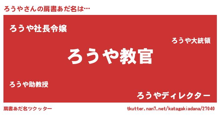 | 男性向けラノベタイトル風あだ名 | 『魔弾の王とろうや』『ろうやの憂鬱』 |
