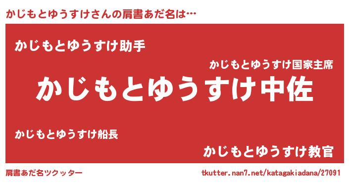 | 男性向けラノベタイトル風あだ名 | 『かじもとゆうすけ~年齢イコール彼女いない歴の魔法使い~』 |