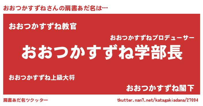| 男性向けラノベタイトル風あだ名 | 『ノーゲーム・ノーオオツカスズネ』 |