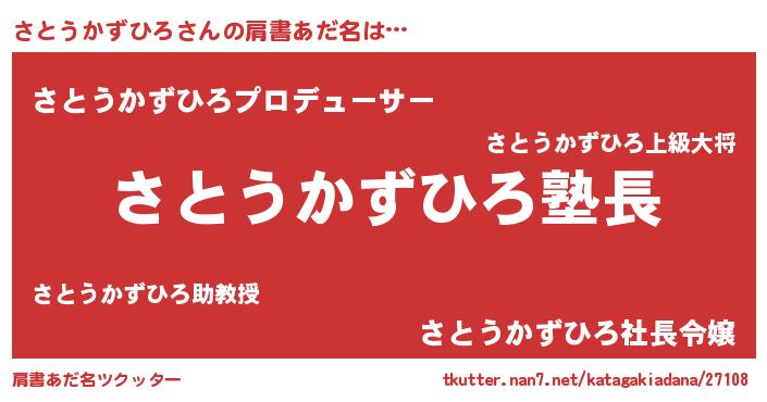 | 男性向けラノベタイトル風あだ名 | 『さとうかずひろの嫁は女の子じゃないと思った?』 |