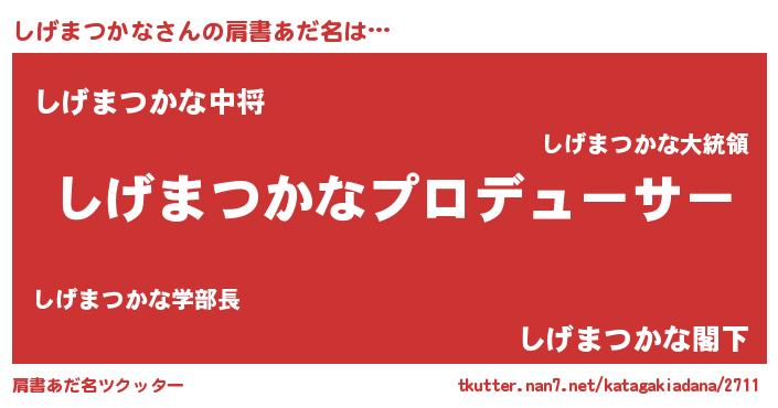 | 男性向けラノベタイトル風あだ名 | 『はたらくしげまつかなさま!』 |