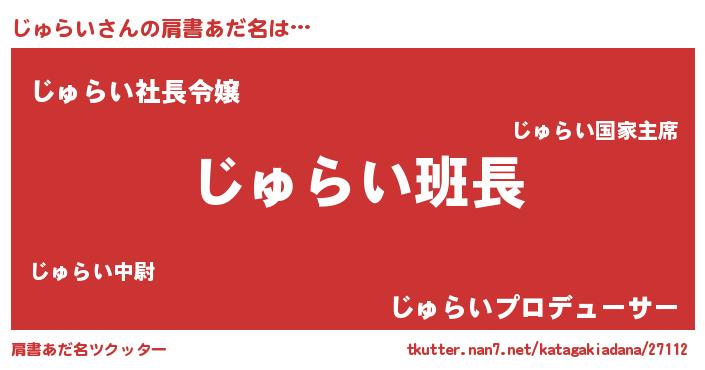 | ポケモン風あだ名 | 『ヒジュライ』『ジュチュウ』 |