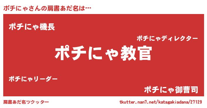 | 男性向けラノベタイトル風あだ名 | 『この素晴らしい世界にポチにゃを!』 |