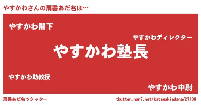 | ポケモン風あだ名 | 『ヒヤスカワ』『ヤスセウス』 |