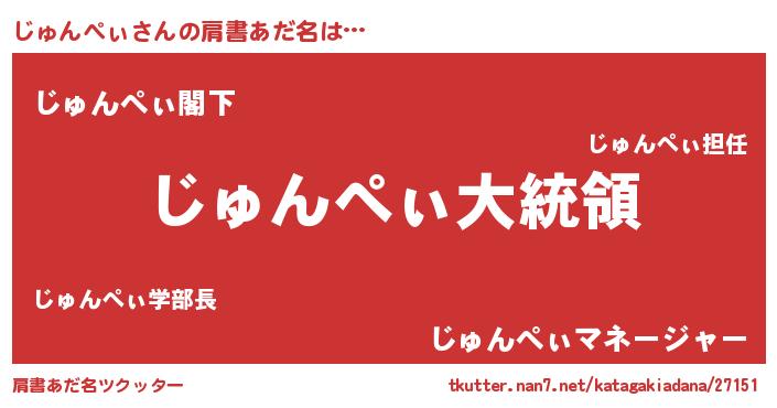 | ファンタジー風あだ名 | 『エターナルジュンペィー』『ゼジュトゥ』 |