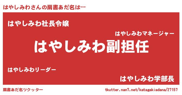 | 意味不明あだ名 | 『永久保存はやしみわ』 |