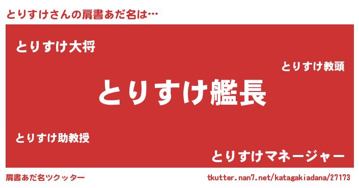 | 胡散臭い通販商品みたいなあだ名 | 『絶対に幸福をもたらす健康食品…その名も「とりすけ」』 |