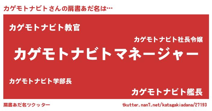 | 男性向けラノベタイトル風あだ名 | 『はたらくカゲモトナビトさま!』 |