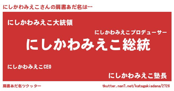 | 恥ずかしいあだ名 | 『ニシカワミエコデラックス』『にしちん』 |