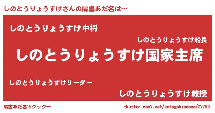 | 男性向けラノベタイトル風あだ名 | 『やはりしのとうりょうすけの青春ラブコメはまちがっている 』 |