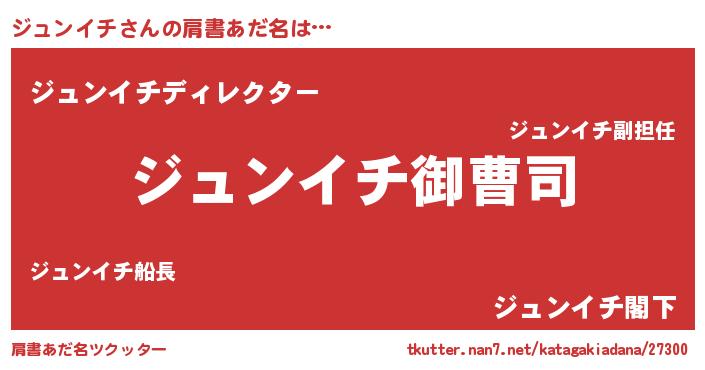 | 男性向けラノベタイトル風あだ名 | 『ジュンイチの憂鬱』『緋弾のジュンイチ』 |