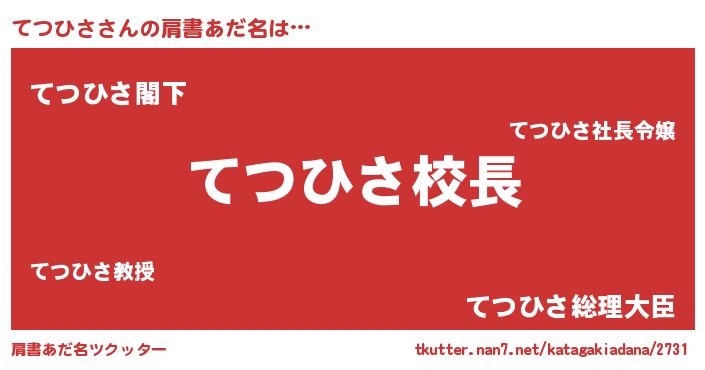 | 女子向けラノベタイトル風あだ名 | 『異世界で失敗しない100のてつひさ』 |