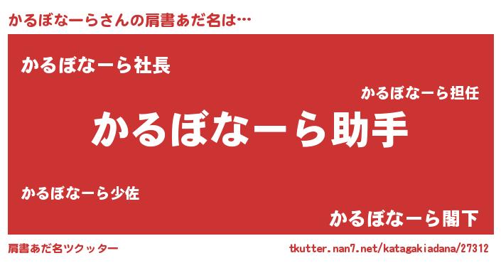 | ヘコむあだ名 | 『かるにゅー』『かるぼなーら(笑)』 |