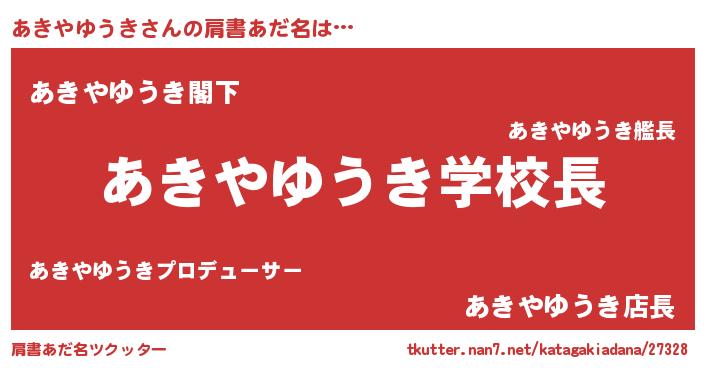 | 男性向けラノベタイトル風あだ名 | 『ノーゲーム・ノーアキヤユウキ』 |