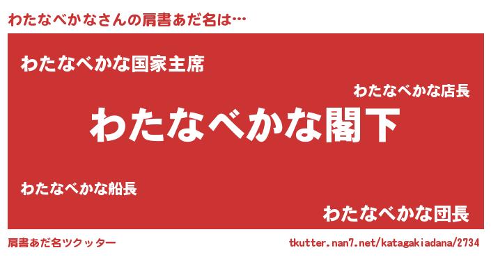 | 男性向けラノベタイトル風あだ名 | 『Re:わたなべかなから始める異世界生活』 |