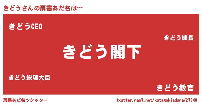 | 男性向けラノベタイトル風あだ名 | 『Re:きどうから始める異世界生活』 |