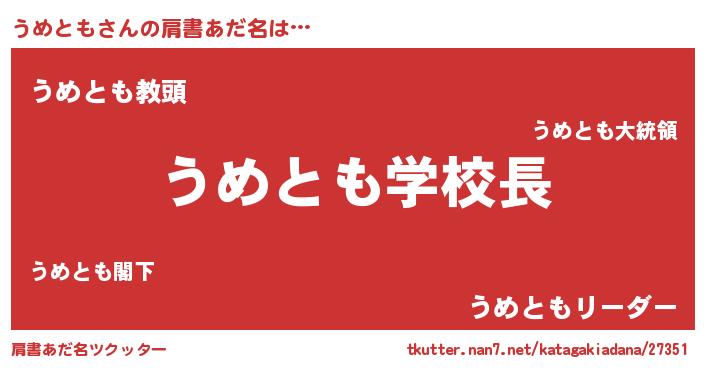 | 欧米人風あだ名 | 『ダニエルうめとも』『ウサインうめとも』 |