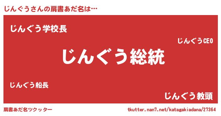 | ヒーロー風カッコイイあだ名 | 『最強戦士ジングウ』『愛の使者じんぐう』 |