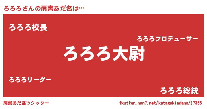 | 男性向けラノベタイトル風あだ名 | 『ろろろ~年齢イコール彼女いない歴の魔法使い~』 |