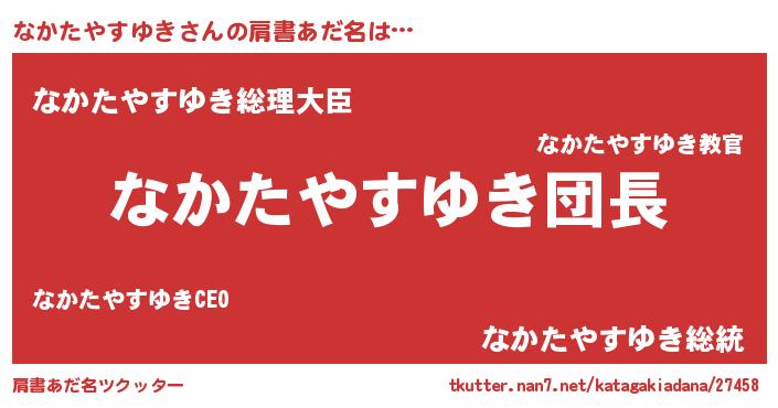 | ポケモン風あだ名 | 『ヒナカタヤスユキ』『ナカタダネ』 |