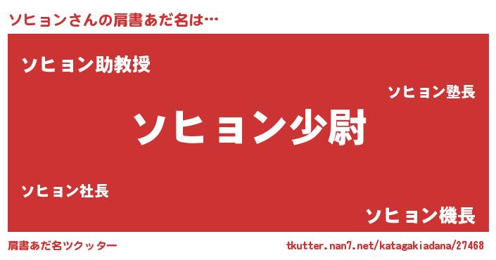 | 男性向けラノベタイトル風あだ名 | 『ソヒョン~年齢イコール彼女いない歴の魔法使い~』 |
