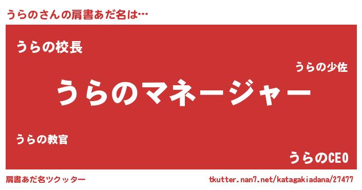 | 欧米人風あだ名 | 『アンジェラ・うらの』『マイケルうらの』 |