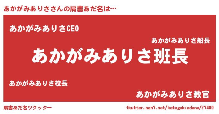 | 意味不明あだ名 | 『とにかく怪しいあかがみありさ』 |