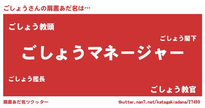| 男性向けラノベタイトル風あだ名 | 『はたらくごしょうさま!』 |