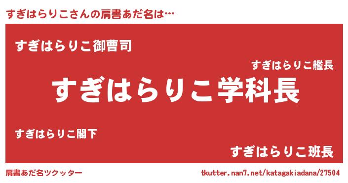 | ヒーロー風カッコイイあだ名 | 『天空の使者すぎはらりこ』 |