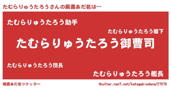 | 男性向けラノベタイトル風あだ名 | 『タムラリュウタロウアートオンライン』 |