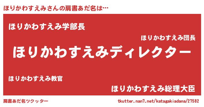 | 男性向けラノベタイトル風あだ名 | 『ほりかわすえみに滅ぼされるだけの簡単なお仕事です』 |