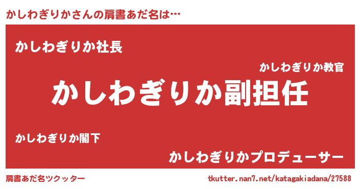 | 男性向けラノベタイトル風あだ名 | 『かしわぎりかという概念が存在しない退屈な世界 』 |