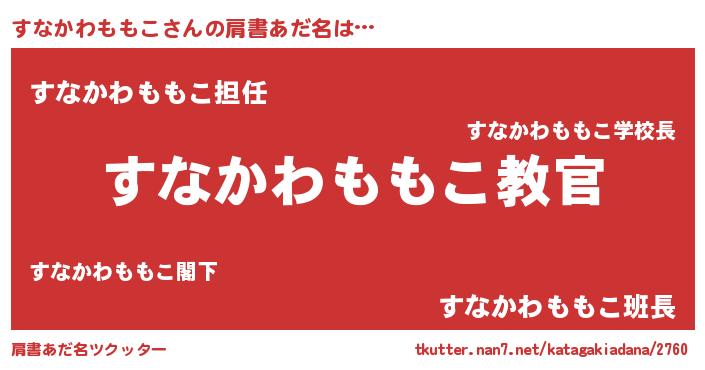 | ヒーロー風カッコイイあだ名 | 『仮面スナダー』『ネオスナカワモモコ』 |