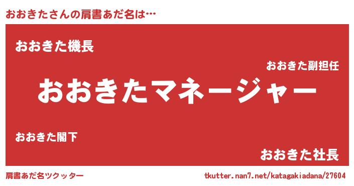 | 男性向けラノベタイトル風あだ名 | 『おおきたに滅ぼされるだけの簡単なお仕事です』 |