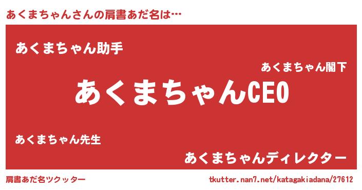 | ヒーロー風カッコイイあだ名 | 『スーパーアクマチャン』『暗黒騎士アク』 |