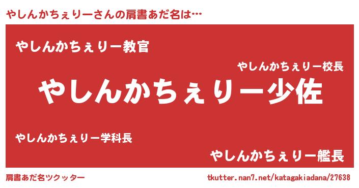 | 料理風あだ名 | 『やしんかちぇりーごはん』 |