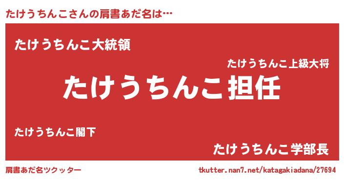| 女子向けラノベタイトル風あだ名 | 『たけうちんこの契約王妃』 |