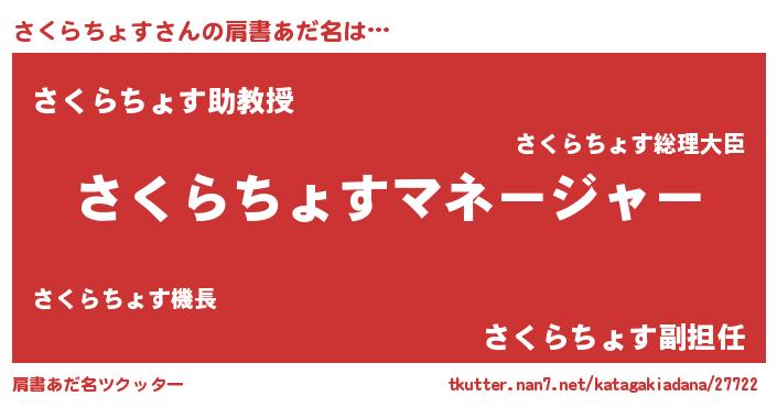| 男性向けラノベタイトル風あだ名 | 『さくらちょすに滅ぼされるだけの簡単なお仕事です』 |