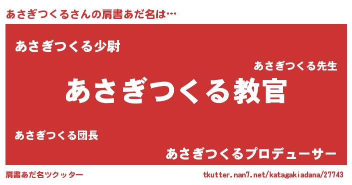 | 男性向けラノベタイトル風あだ名 | 『この素晴らしい世界にあさぎつくるを!』 |
