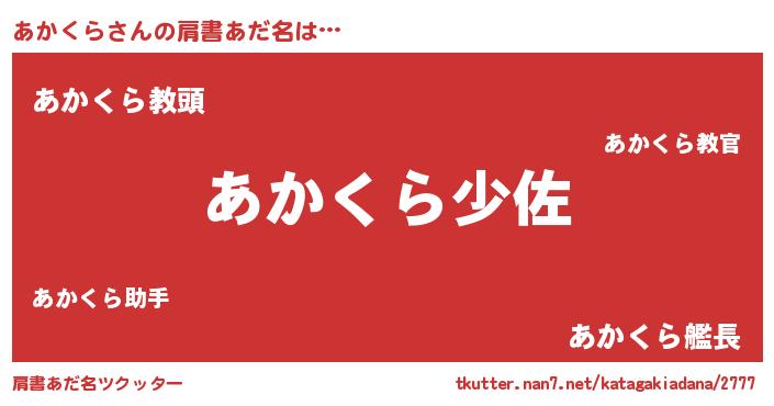 | 意味不明あだ名 | 『つくし科あかくら属』『自称あかくら』 |