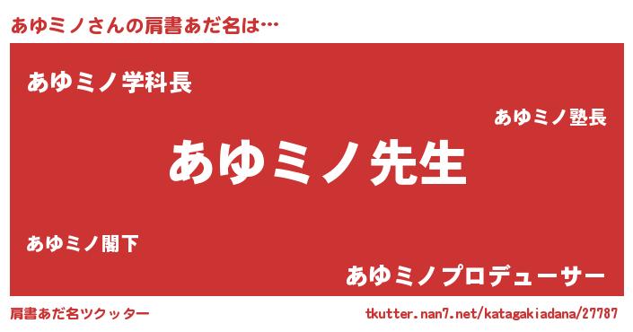 | 意味不明あだ名 | 『永久保存あゆミノ』『自称あゆミノ』 |