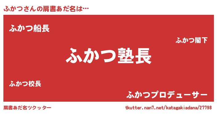 | 女子向けラノベタイトル風あだ名 | 『ふかつ様がみてる』『ふかつの契約王妃』 |