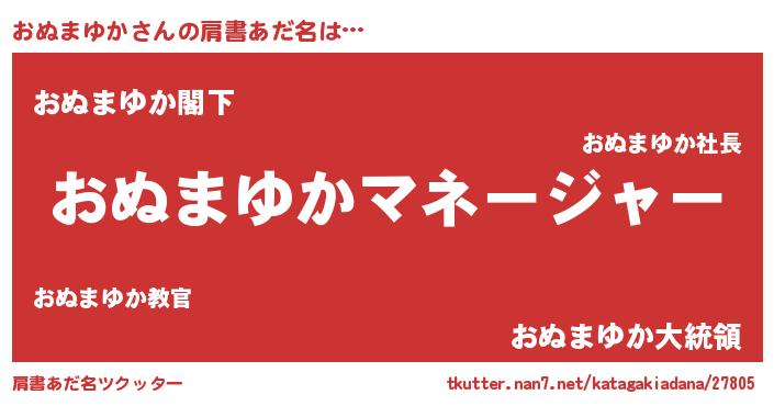 | 意味不明あだ名 | 『自称おぬまゆか』『ペロリンおぬまゆか』 |