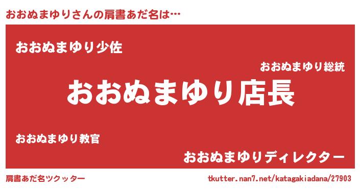 | ヘコむあだ名 | 『おおにゅー』『おおぬまゆり(小並感)』 |