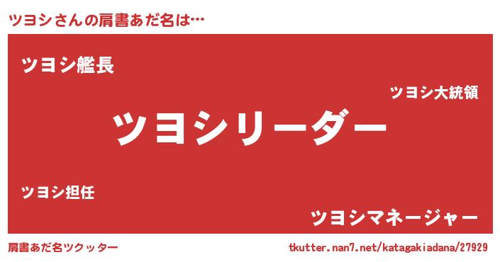 | ヒーロー風カッコイイあだ名 | 『暗黒騎士ツヨ』『ウルトラツヨシマン』 |