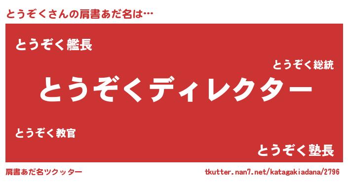 | ヒーロー風カッコイイあだ名 | 『黄金騎士トウ』『サイバー戦士トウゾク』 |