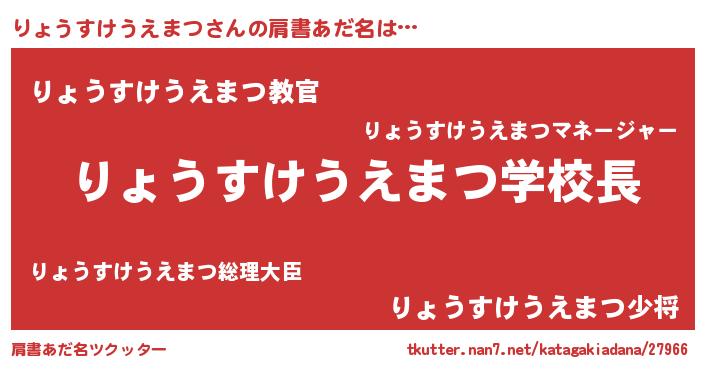 | 男性向けラノベタイトル風あだ名 | 『ノーゲーム・ノーリョウスケウエマツ』 |