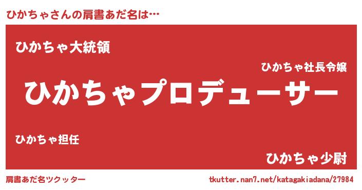 | ヒーロー風カッコイイあだ名 | 『ウルトラひかちゃマン』『ネオヒカチャ』 |