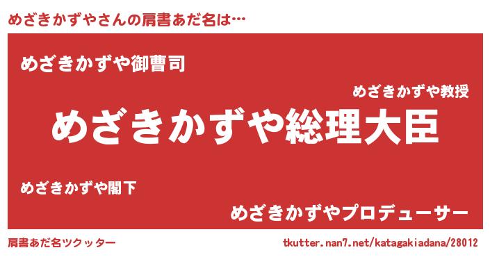 | 男性向けラノベタイトル風あだ名 | 『やはりめざきかずやの青春ラブコメはまちがっている 』 |